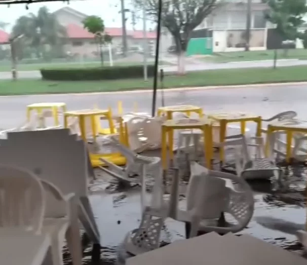 O forte temporal com ventos intensos e granizo atingiu Matupá, ontem, no fim da tarde. Em vídeos nas redes sociais, os moradores filmaram um estabelecimento que foi destelhado, cadeiras de uma empresa sendo levadas pelos ventos e houve queda de energia em alguns bairros.