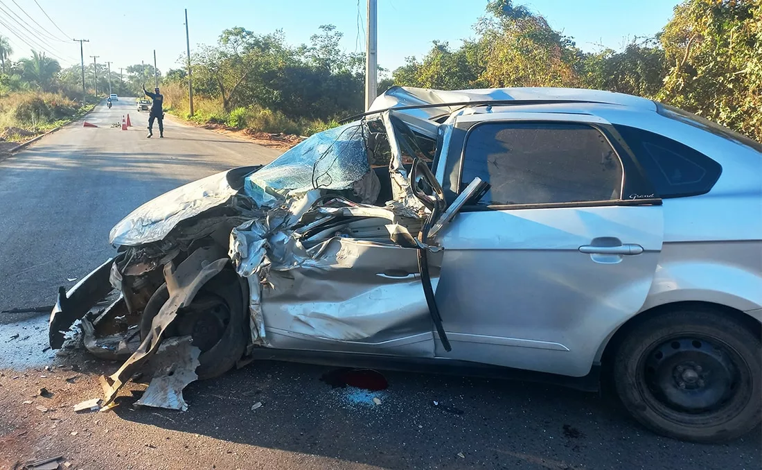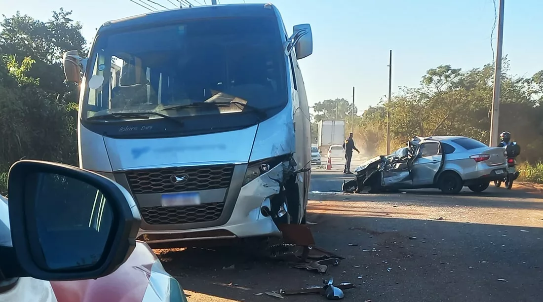 Acidente entre carro e micro-ônibus deixa um preso às ferragens em Mato Grosso