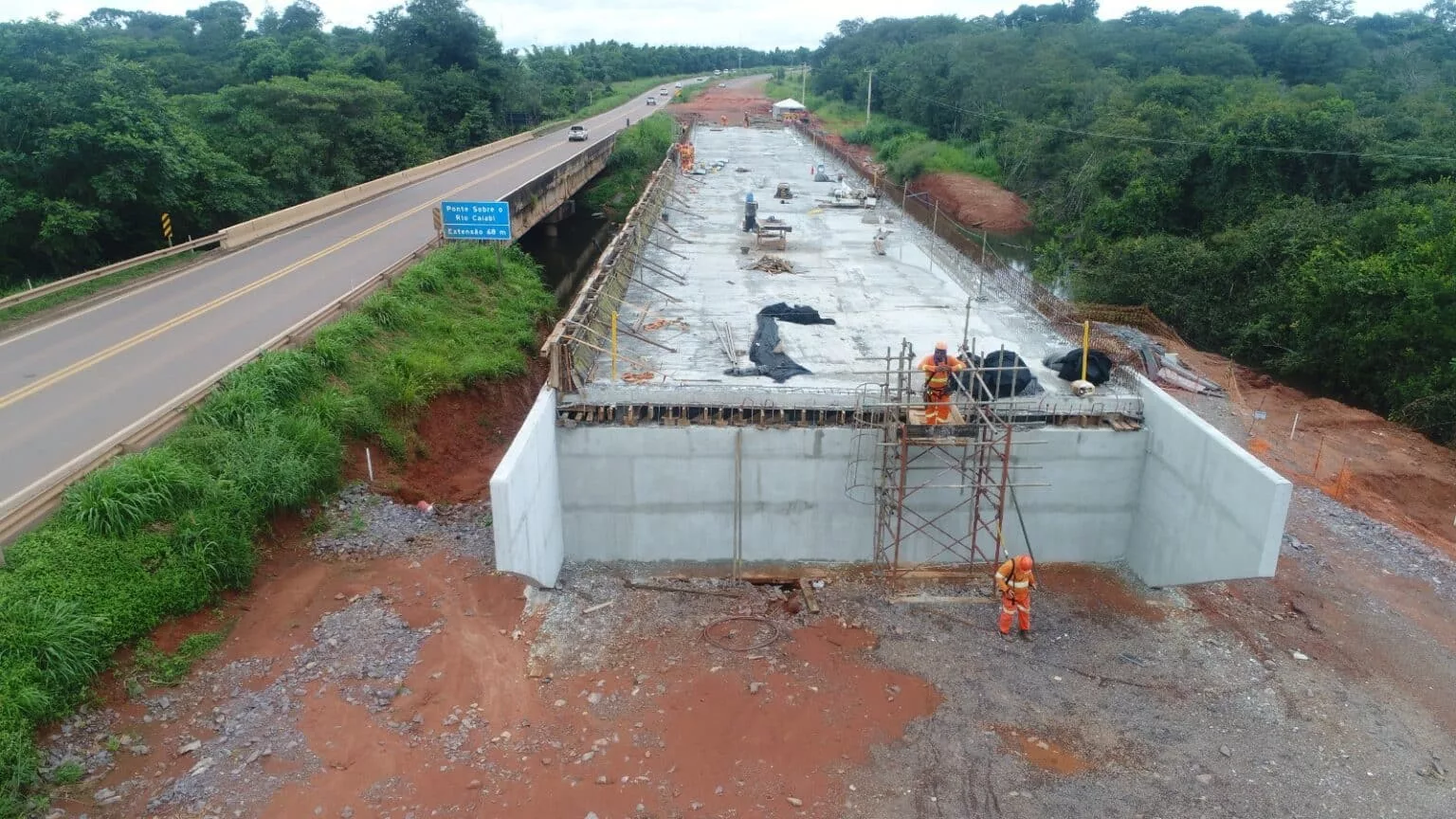 As obras estruturais das três pontes sobre os rios Nandico, Caiabi e Celeste, na BR-163, entre Sinop e Sorriso, ficam prontas neste trimestre. A concessionária Nova Rota do Oeste informou que já foram concluídas 95%. Os trabalhos entram agora na fase de encabeçamento das estruturas, que consiste na execução de aterros de acesso às pontes. Essa etapa depende de condições climáticas favoráveis e deve ser iniciada após o término do período chuvoso, durante a estação seca.