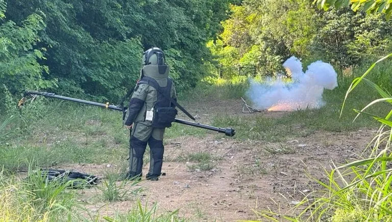 Após a abordagem, a suspeita foi levada à Politec para exame de corpo de delito e, posteriormente, encaminhada à central de flagrantes. A área ao redor da residência onde as granadas foram encontradas foi isolada pelas equipes, e o Bope de Cuiabá foi chamado para realizar a detonação dos artefatos explosivos.