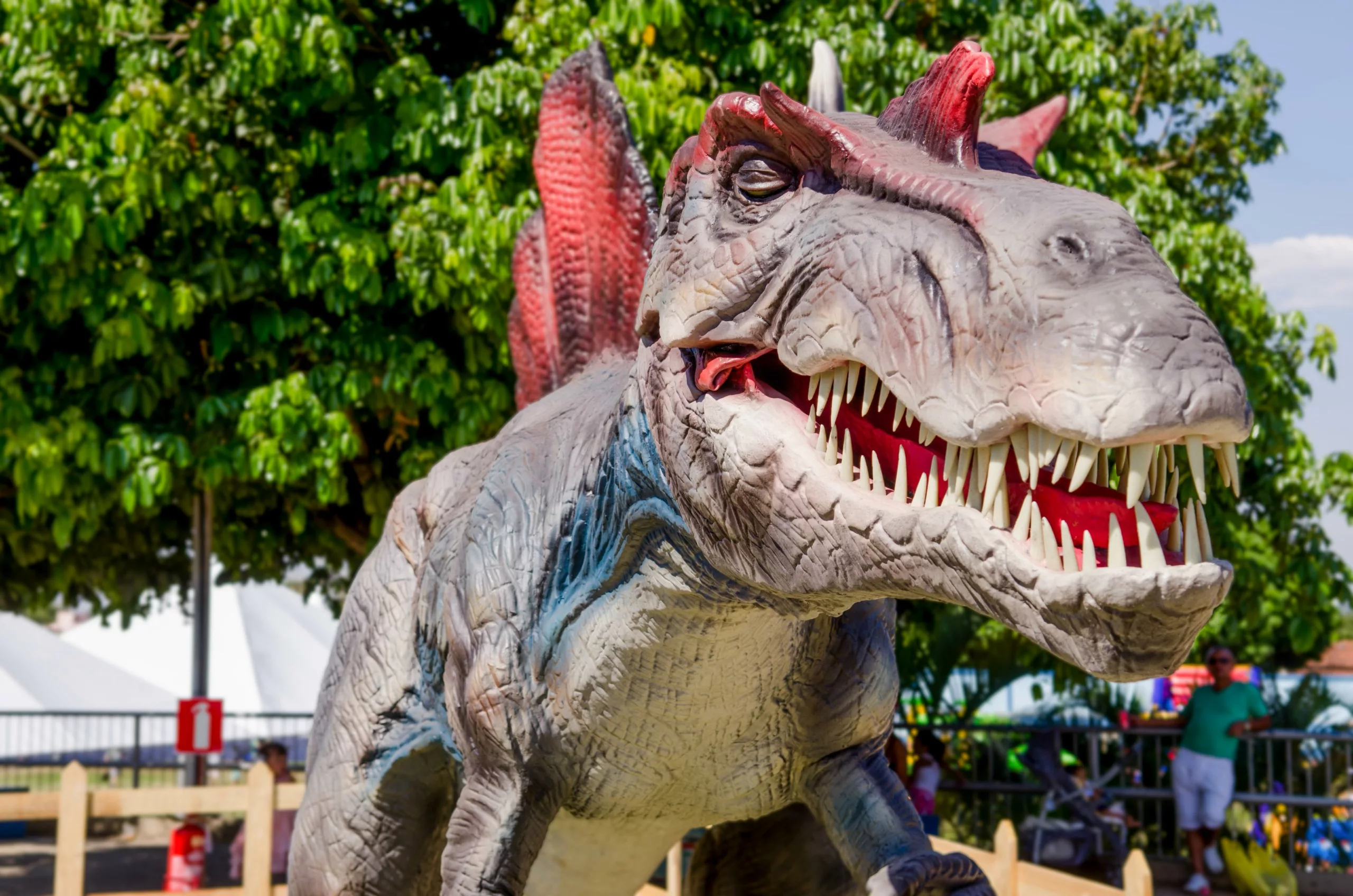Entre os exemplares, alguns dos mais conhecidos pelo público, como o Tiranossauro Rex, que mede 13 metros de comprimento e 6 metros de altura, e o Tricerátopo, reconhecido pelos chifres na cabeça. Também fazem parte do evento o Espinossauro, o Carnotauro, o Estegossauro, além de outros modelos representativos do período. A estrutura inclui ainda a réplica de um ovo de dinossauro.
